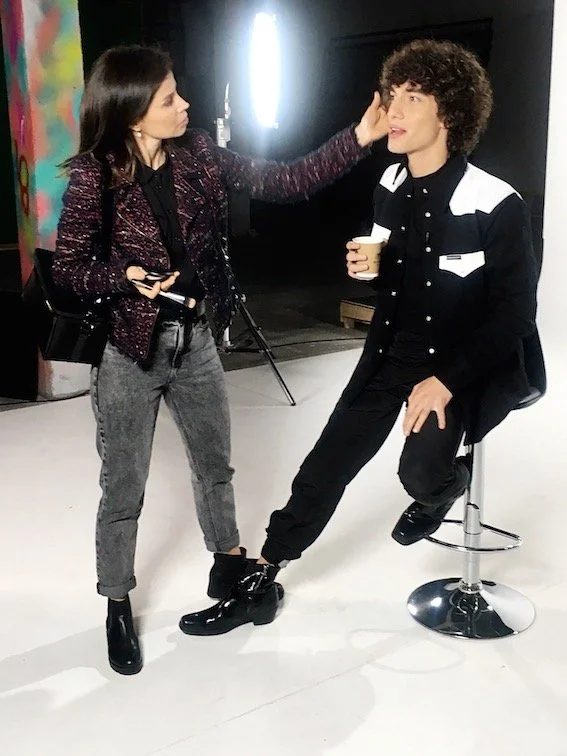 Pia Bedregal Touching Up Jorge López’s Makeup Before Studio Shoot